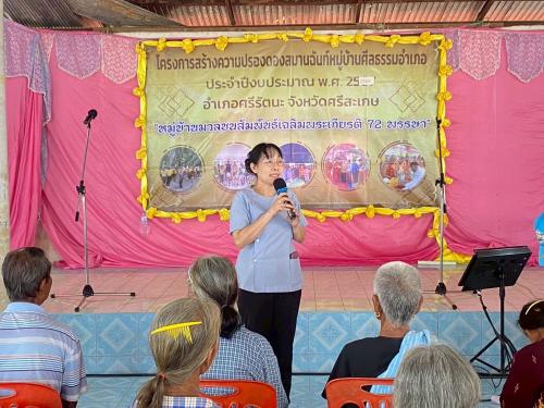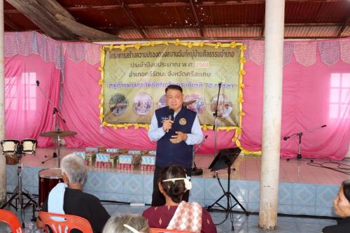 วันอังคารที่ 27 พฤษภาคม 2568 เวลา 08.00 น. ณ ศาลาวัดบ้านตูม หมู่ที่ 1 ตำบลตูม อำเภอศรีรัตนะ จังหวัดศรีสะเกษ นายสุรพล ศรีพนมธนากร นายอำเภอศรีรัตนะ เป็นประธานจัดกิจกรรมโครงการสร้างความปรองดองสมานฉันท์ (อำเภอยิ้ม) หมู่บ้านศีลธรรมอำเภอศรีรัตนะ จังหวัดศรีสะเกษ ประจำปีงบประมาณ พ.ศ. 2568 ”หมู่บ้านมวลชนสัมพันธ์เฉลิมพระเกียรติ 72 พรรษา“ พร้อมด้วยส่วนราชการ หน่วยงานรัฐวิสาหกิจ ผู้นำท้องที่/ท้องถิ่น ในเขตพื้นที่อำเภอศรีรัตนะ ออกหน่วยให้บริการฯ เพื่อสร้างวัฒนธรรมการอยู่ร่วมกันด้วยความปรองดอง สมานฉันท์ ลดปัญหาความขัดแย้ง สร้างความมั่นคง ก่อให้เกิดสันติสุขในหมู่บ้าน/ชุมชน พัฒนาไปสู่หมู่บ้านศีลธรรม พร้อมทั้งนำภารกิจศูนย์ดำรงธรรมอำเภอคลายทุกข์ ภารกิจ อส.สัมพันธ์ และบริการอื่นๆ ในรูปแบบศูนย์บริการร่วม และการแก้ไขปัญหาความเดือดร้อนของประชาชนในพื้นที่ โดยการมอบถุงยังชีพให้แก่ผู้ป่วยติดเตียง ผู้สูงอายุและผู้ด้อยโอกาส ภายใต้ภารกิจของกระทรวงมหาดไทย